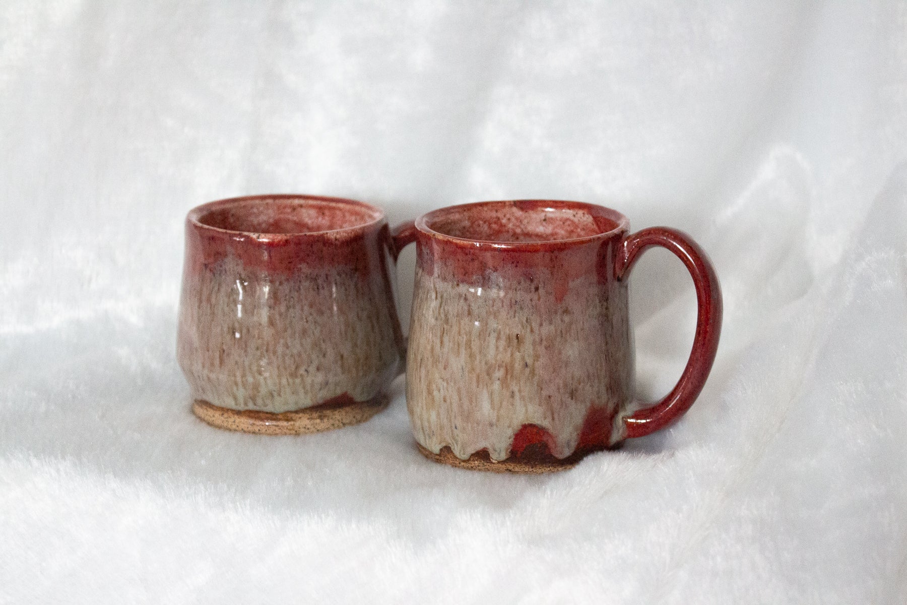 Features a dimensional rich red and blue glaze on a speckled stoneware clay body.